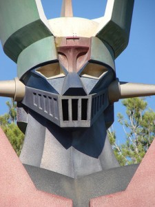 Fotografía de la estatua de Mazinger Z antes de ser restaurada