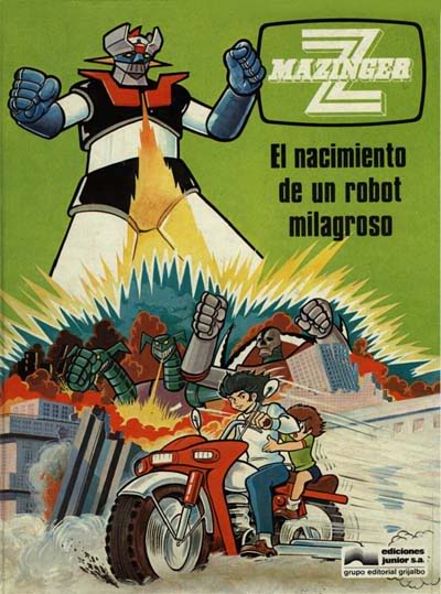 Primer volumen de los cómics Grijalbo Sábado tras sábado la cita con Mazinger Z por la televisión era algo más que necesaria. Nadie de nosotros se podía perder ningún capítulo. Yo pude verlos casi todos, menos uno, pero tenía una buena excusa. En aquella época existía algo que se llamaba "Servicio militar obligatorio" y junto con mi familia me desplacé a la ciudad de Vitoria. Un miembro de mi familia, juraba bandera en la ciudad alavesa el mismo día de la emisión de Mazinger Z. Cuando terminó el desfile eran las 16:30 horas por lo que no pude ver el capítulo de esa tarde. Pocos años después pude visualizarlo en video. El fenómeno Mazinger Z llegó tan lejos que los imitadores tampoco perdieron su oportunidad. En los cines españoles se estrenó una película taiwanesa protagonizada por personas reales llamada; Mazinger Z "El robot de las estrellas" una producción de serie B, bastante floja, con un robot de color rojo nada parecido al Mazinger Z original. En el estreno de la película en las grandes pantallas de Valencia (en el resto de España lo desconozco) nos encontrábamos en la puerta de los cines una figura de corcho del robot de las estrellas, de unos 5 metros de altura (para adornar mejor el film). Los niños le pegaban pellizcos y muy poco a poco de la figura solo quedaba la sombra. Una semana después, acudí con mis primos al mismo cine y la figura fue repuesta por otra similar, eso sí, esta vez estaba en el techo del cine. Hasta en los "Sobres sorpresa" que vendían en muchos kioscos, aparte de encontrarte dentro de ellos: globos, caramelos y naipes también te podías llevar algún cómic de "El robot de las estrellas" (de Editorial Valenciana) pero yo me deshice de todos ellos cambiándolos en el colegio por cromos, siempre pensaba (personalmente) que era una mala copia de Mazinger Z.
