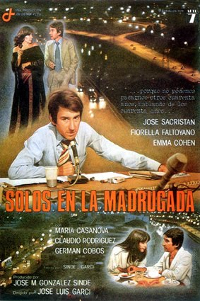 En esta ocasión tratamos el tema de la radio comercial, con todo un clásico de José Luis Garci. La película trata también el tema de la transición española y cómo en la radio comercial solo opina el locutor, pero no los oyentes. El control de los medios de comunicación de la época todavía es muy notable, por eso el locutor cuenta todo tipo de crónicas y tiene argumentos para todos. El programa "Solos en la madrugada" me recuerda en parte a mi programa "Música para las noches calurosas" pero con grandes diferencias: la libertad de expresión de los oyentes y el poder intervenir en el momento que ellos lo deseen, eso sí, siempre todo con mucha educación. José Sacristán protagoniza un gran papel en esta película. Una película que no tiene ningún desperdicio.